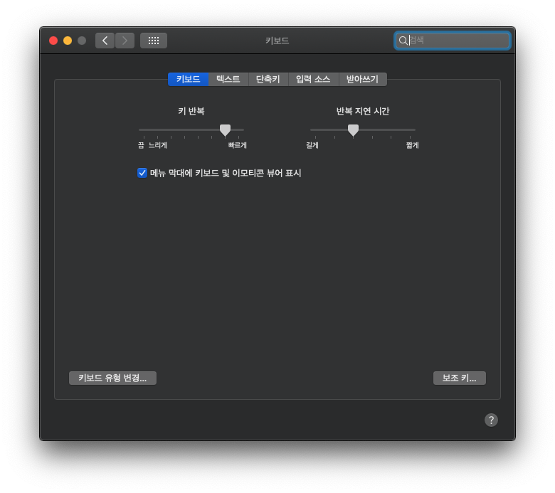 환경설정을 열어 줍니다. 거기서 키보드를 클릭해서 들어간 다음 보조키 부분을 눌러줍니다.