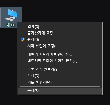 그 이름은 내 PC에서 마우스 오른쪽 버튼을 클릭 > 속성을 클릭하면