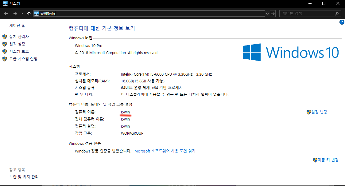 컴퓨터 이름이 나옵니다. i5win 이네요.