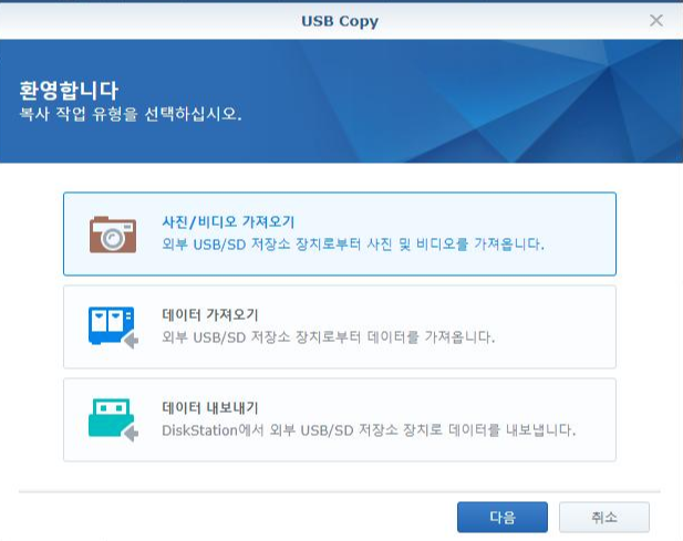 외장하드를 이용하는 USB Copy 를 찾았습니다.