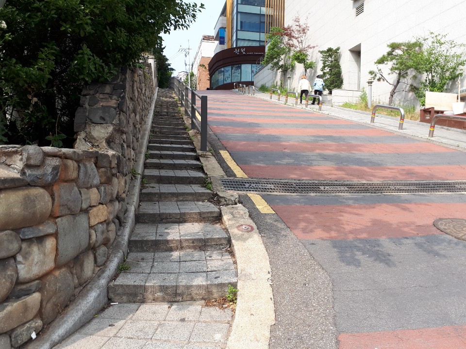 올라갈 용기도 없고 내려갈 용기는 더더욱 없었습니다. 저는 홍대 지리를 잘 알기 때문에 옆에 있는 길을 선택해서 올라갔습니다.