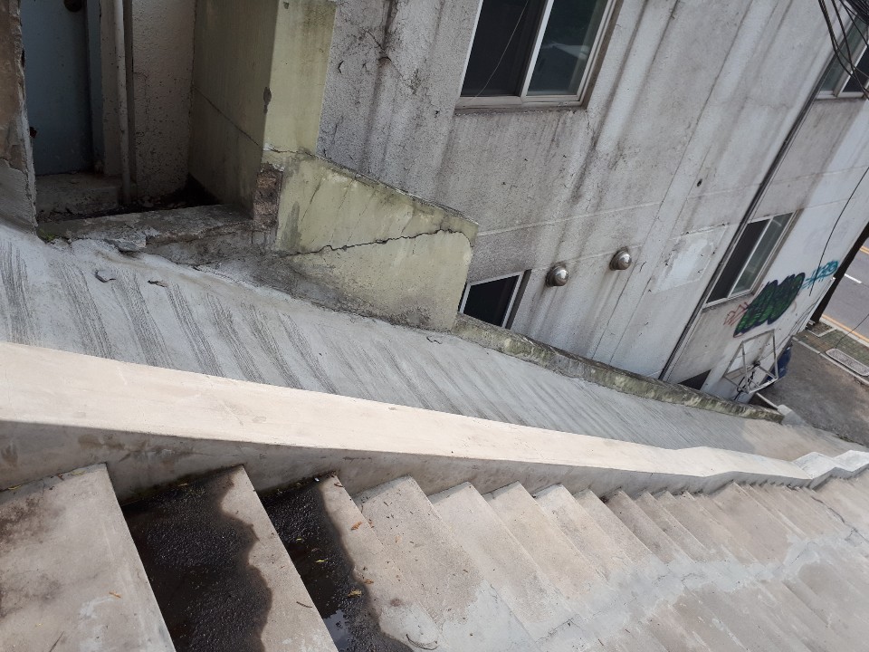 홍대 인근에서 배달의 민족 배민 커넥트를 하다가 걸린 배달지 장소로 가는 길입니다. 거의 45도로 보입니다. 실제로는 24도 정도 입니다. 위에서도 내려다보았는데 이 정도면 브레이크를 잡아도 자전거가 그냥 내려갈 것 같더라고요.