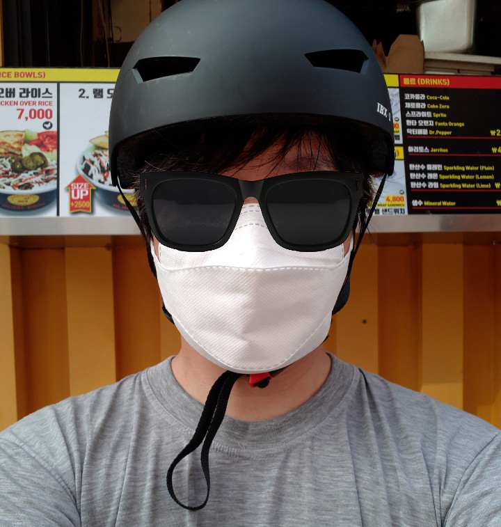 그리고 헬멧은 배민 꺼는 민트색이라 제 취향이 아니어서 20,000원 정도에 구매했습니다. 배민꺼는 10,000원 정도 합니다. 자전거가 검은색인데 모자 뒷부분에 포인트 로고가 있는데 색이 빨강이라서 잘 어울리네요. 색상 조합에서 검빨은 간지가 납니다.