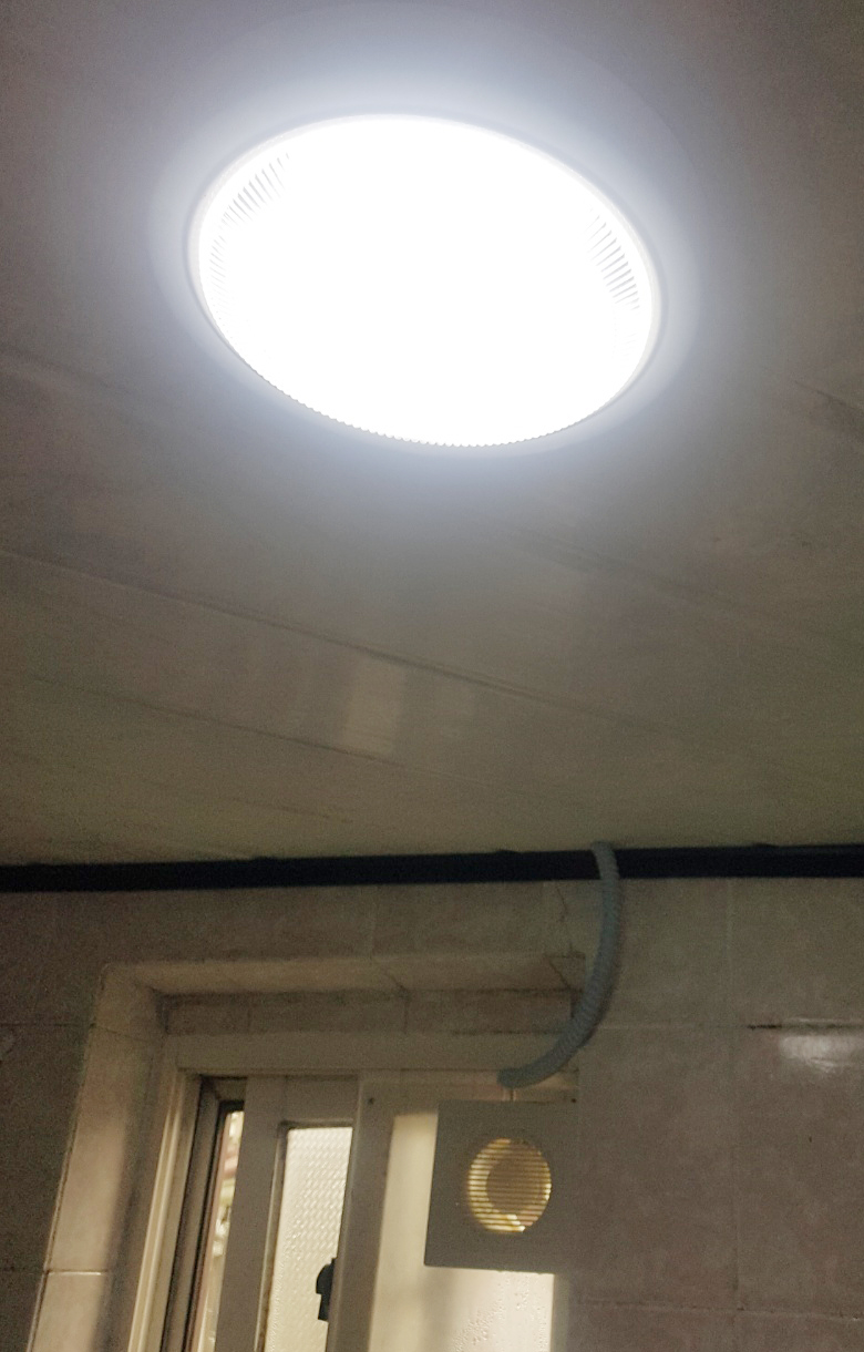 옛날 집이라 환풍기 닥트도 없고 배선도 없어서 화장실 전구 쪽에서 전기를 연장하였습니다.