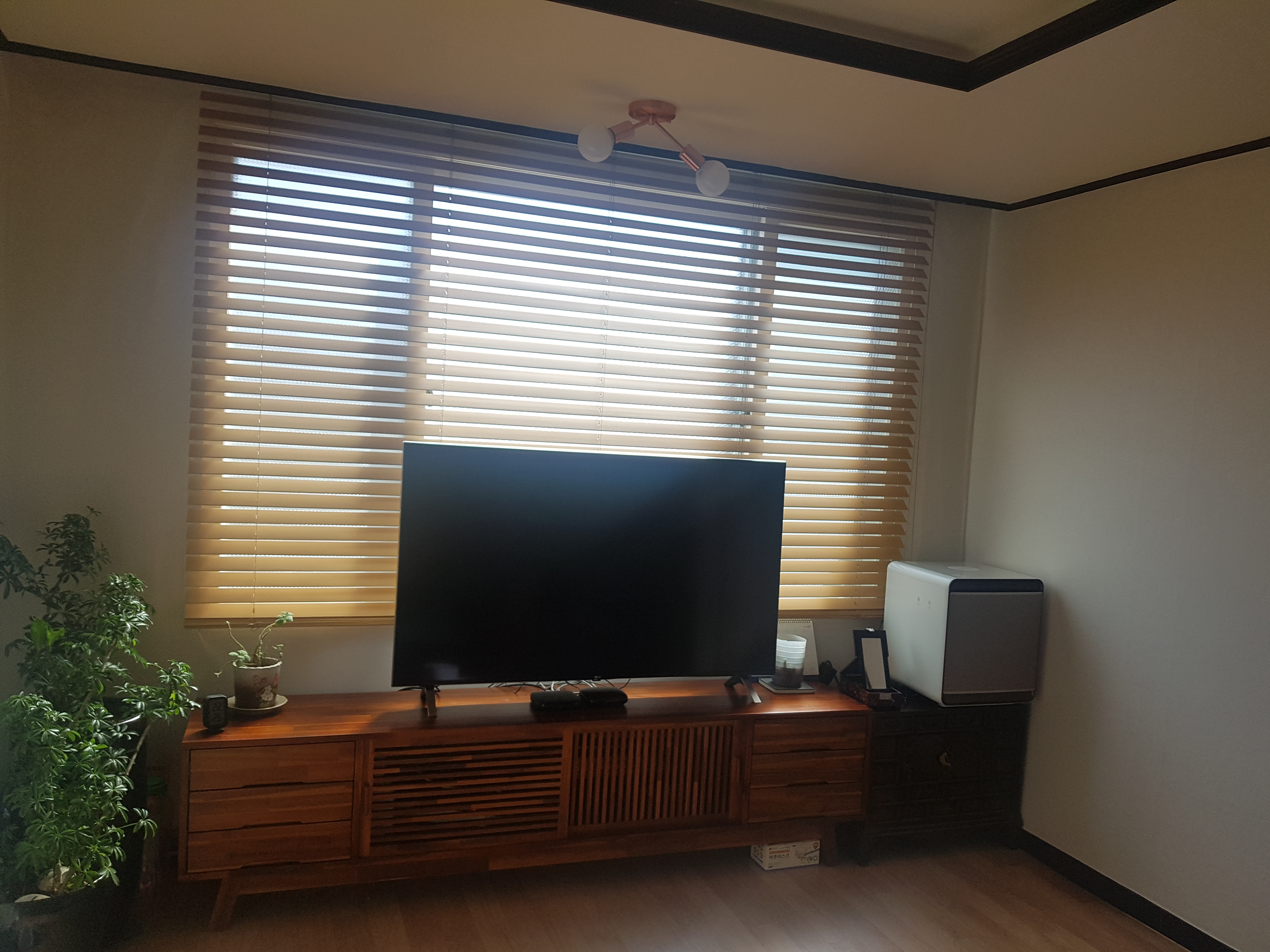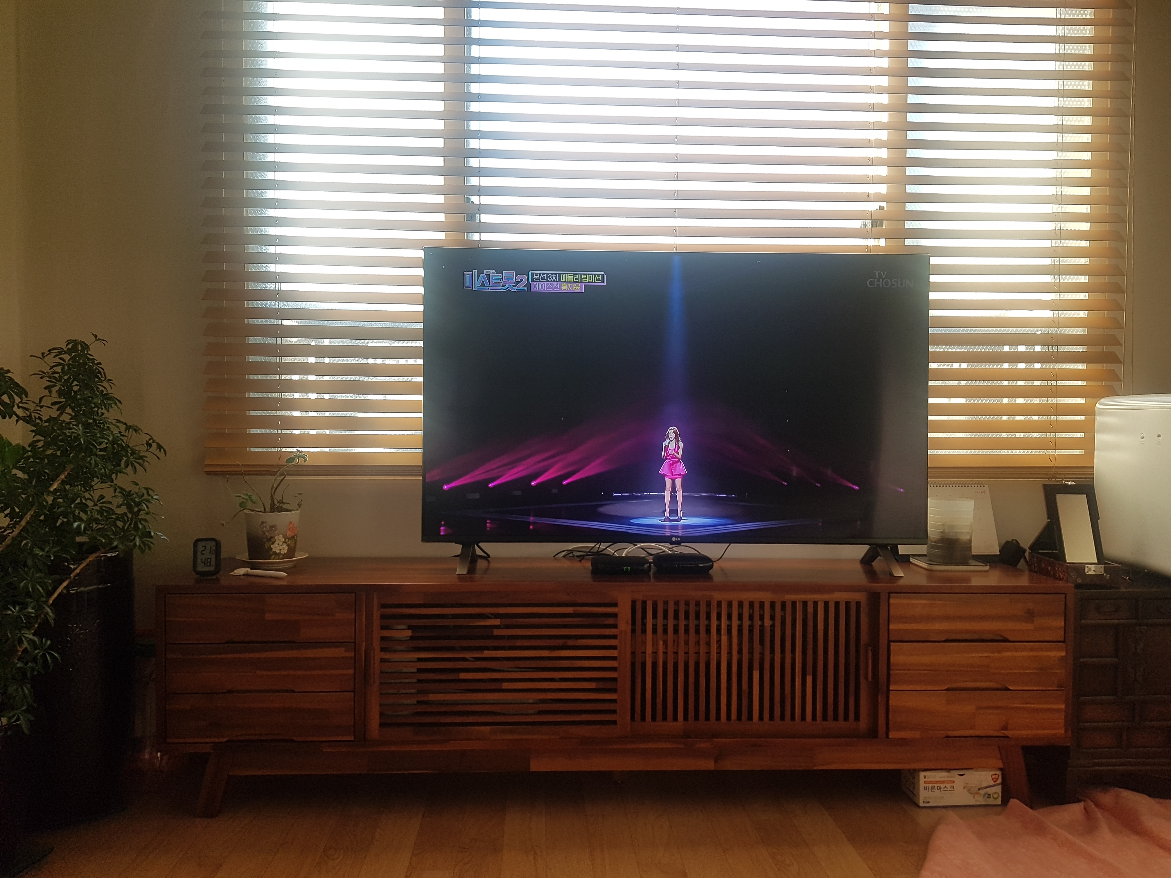 집이 남향이라 블라인드를 치지 않으면 햇빛이 강해서 기존 TV는 화면이 잘 안 보였는데 이번에 새로 산 TV는 화면이 엄청 밝아서 햇빛이 들어와도 화면이 잘 보입니다.