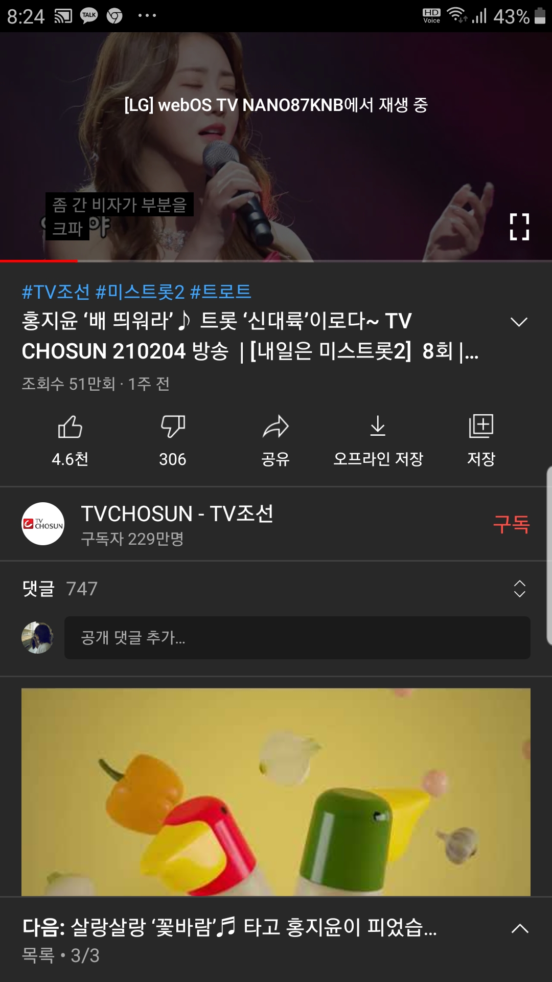 이 제품을 사고 배송된 날이 미스트롯2 준결승 방송이라서 저녁에 미스트롯2를 바로 시청했습니다.