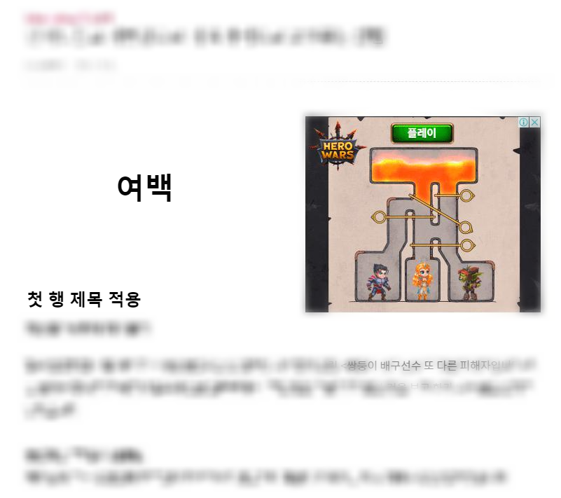 상단 이미지처럼 보이는 이유는 첫 단락에 제목 글이 적용되어서 생기는 문제입니다.