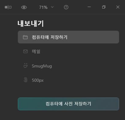 보정이 끝나면 jpg 같은 이미지 파일로 저장이 가능합니다.
