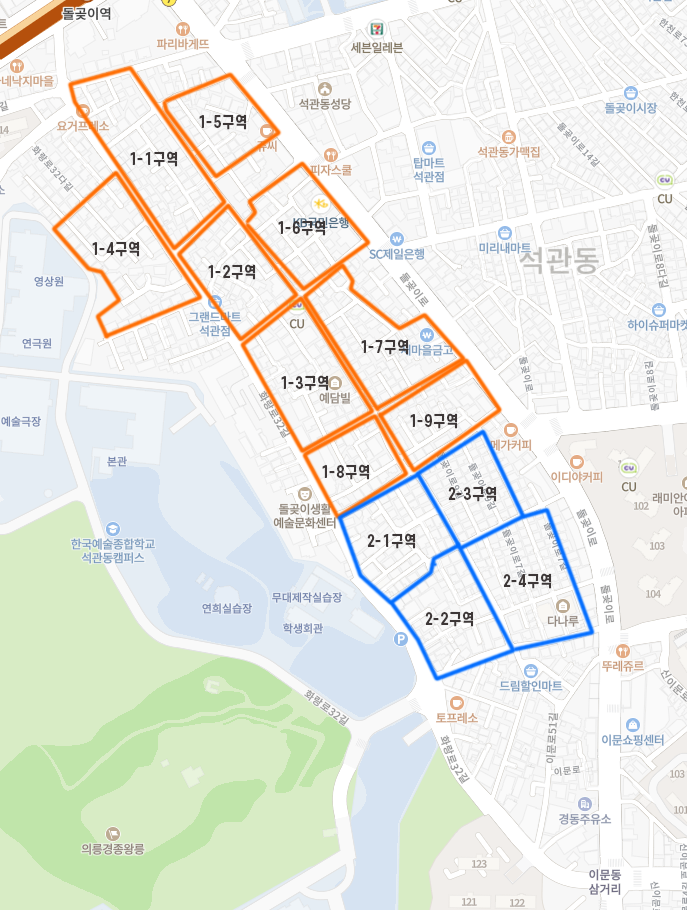 성북구 석관동 지역은 '의릉'이라는 왕릉과 천장산 숲세권에 한예종대학교가 있고 6호선 돌곶이역 1호선 신이문역이 가까운 역세권입니다. 근처 재건축지로는 장위 뉴타운 지역이 철거를 위해 이주 중에 있습니다.