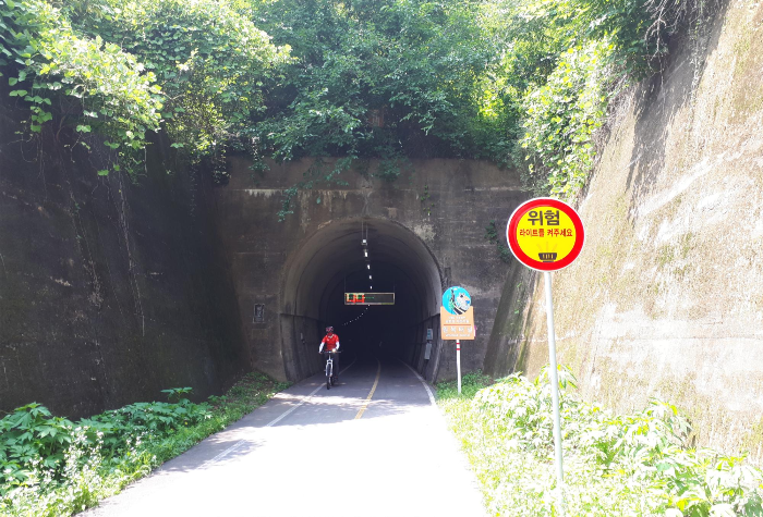 이유는 자전거 도로가 잘 정비되어 있어서 일반도로를 거의 타지 않는 구간이고 터널도 많아서 터널을 달릴 때면 시원함을 느낄 수 있습니다.