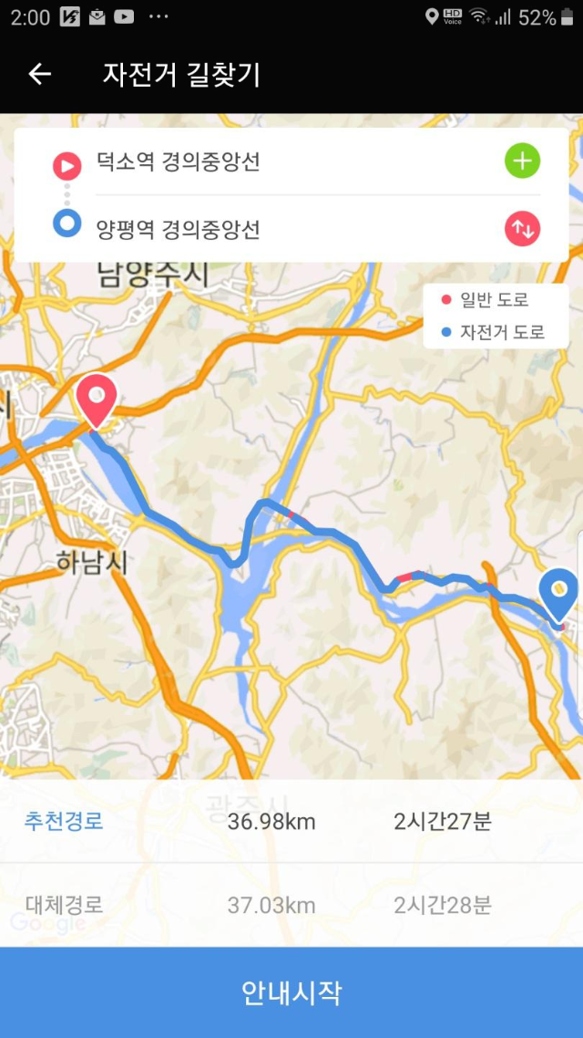 자동차 내비게이션처럼 사용하기 쉬운데 자전거 도로 위주로 길안내를 해주는 앱입니다.