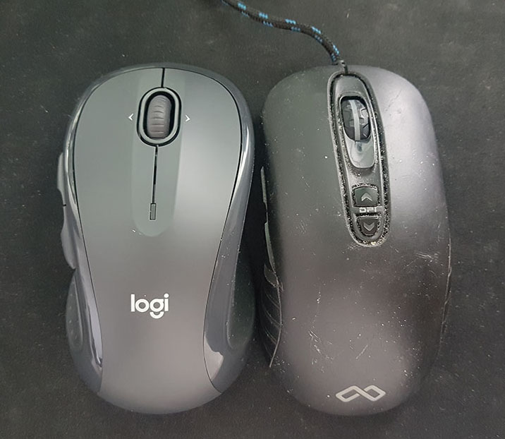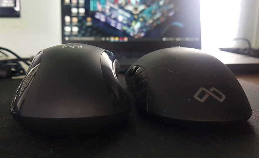 마우스에서 측면에 버튼이 있기 때문입니다. 웹서핑을 할 때 뒤로 가기를 자주 사용하는데 마우스 측면에 달린 버튼을 눌러주면 편하기 때문입니다. 마우스 크기도 피시방에 있는 일반적인 크기이기도 하고요.