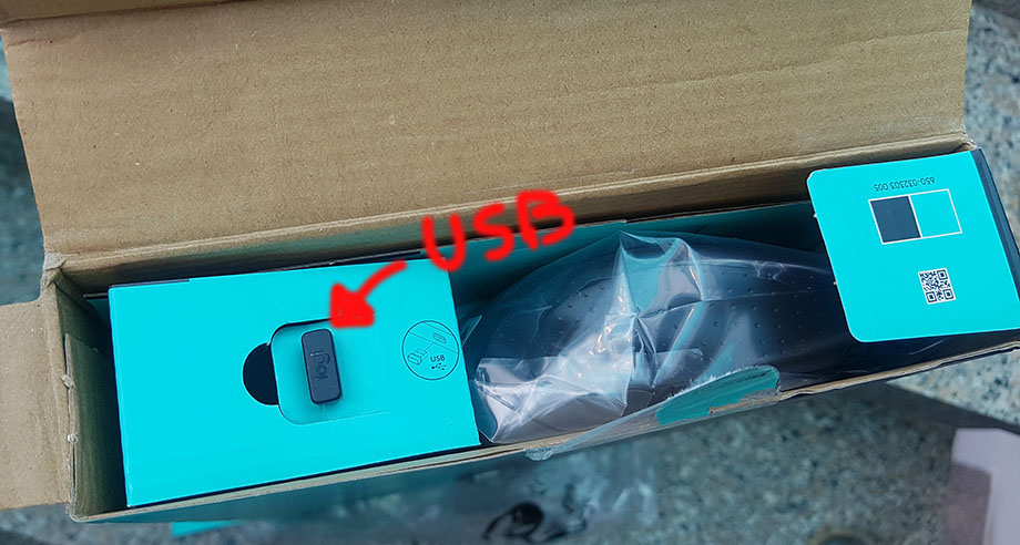 USB 리시버가 이런 곳에 붙어있으니 박스를 버릴 때 구성품을 다 챙겼는지 확인하고 버려야 합니다.