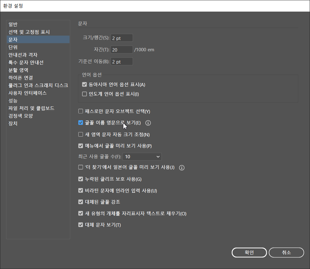 아래의 이미지처럼 "글꼴 이름 영문으로 보기"를 체크해 줍니다.