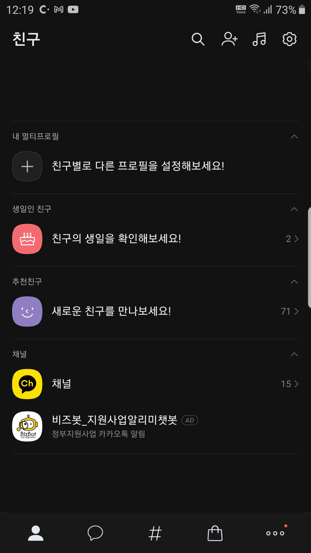 카카오톡 실행 후 우측 하단 "..."를 클릭합니다.