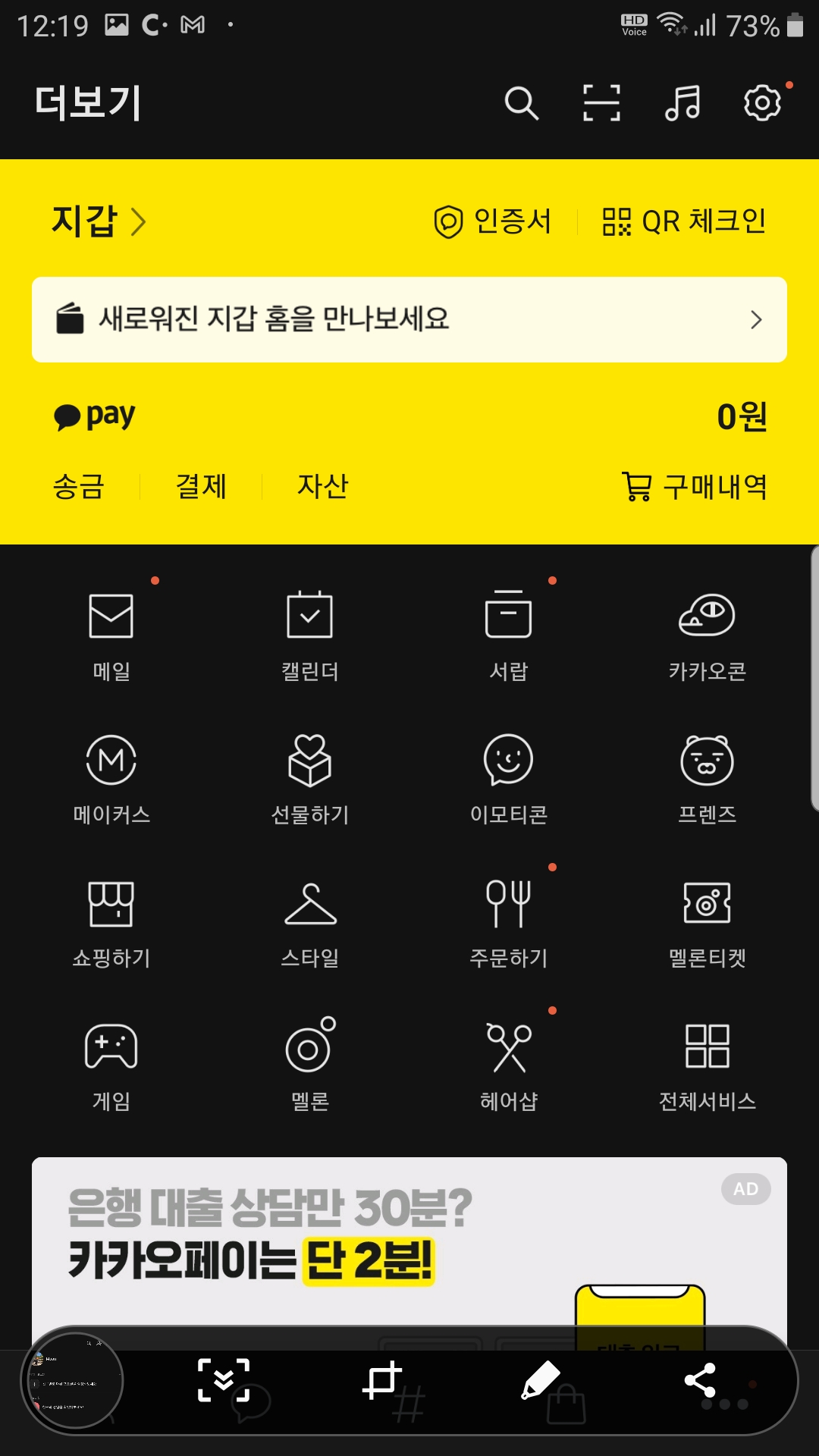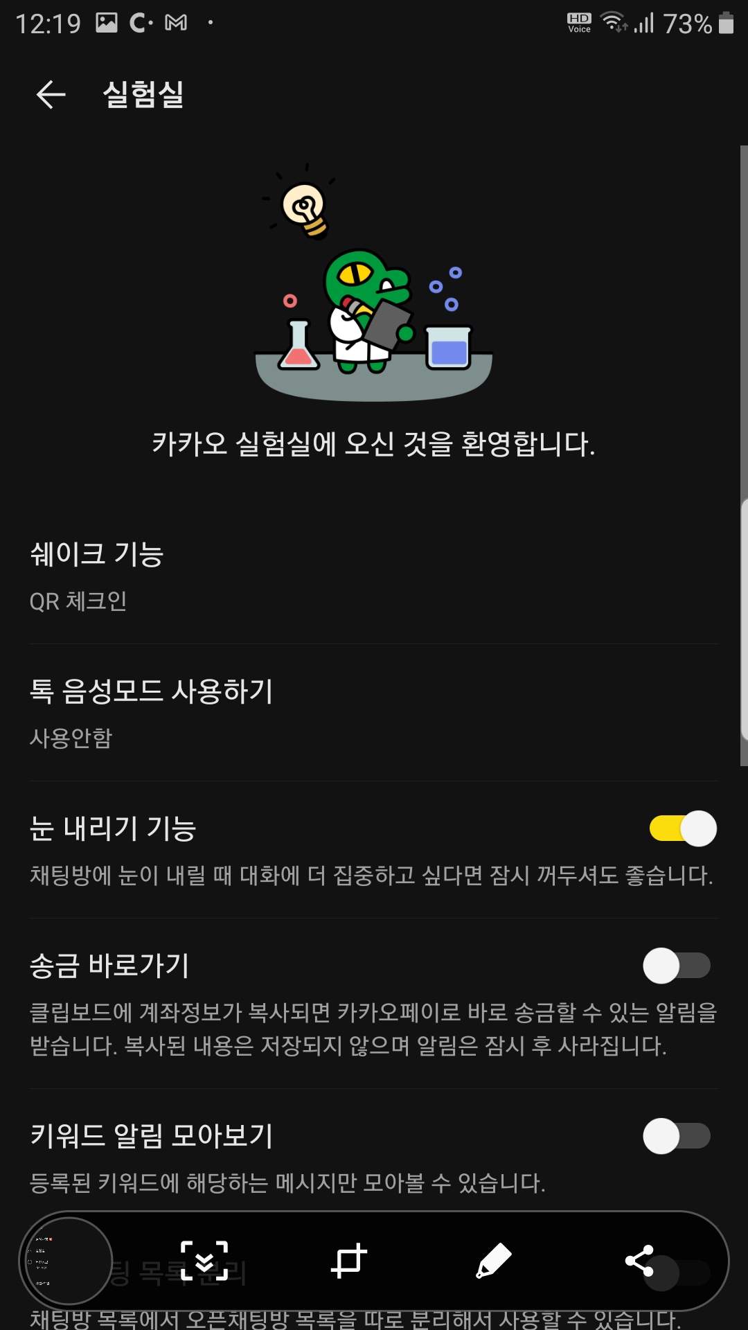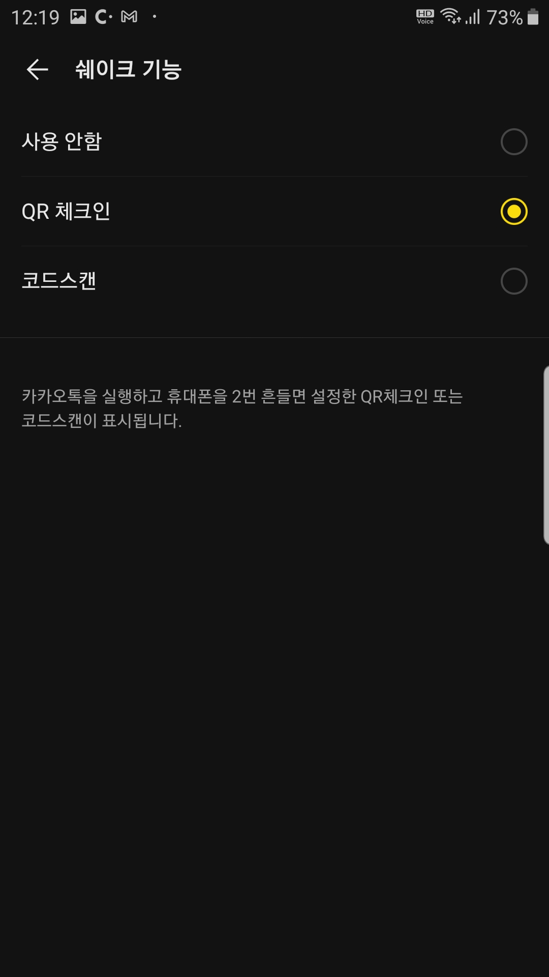 카카오톡 실행 후 약간의 설정만 해주면 카카오톡 실행 후 스마트폰을 흔들기만 하면 QR코드가 자동으로 나와서 체크인을 조금 더 편하게 할 수 있는 방법이 있어서 소개합니다.
