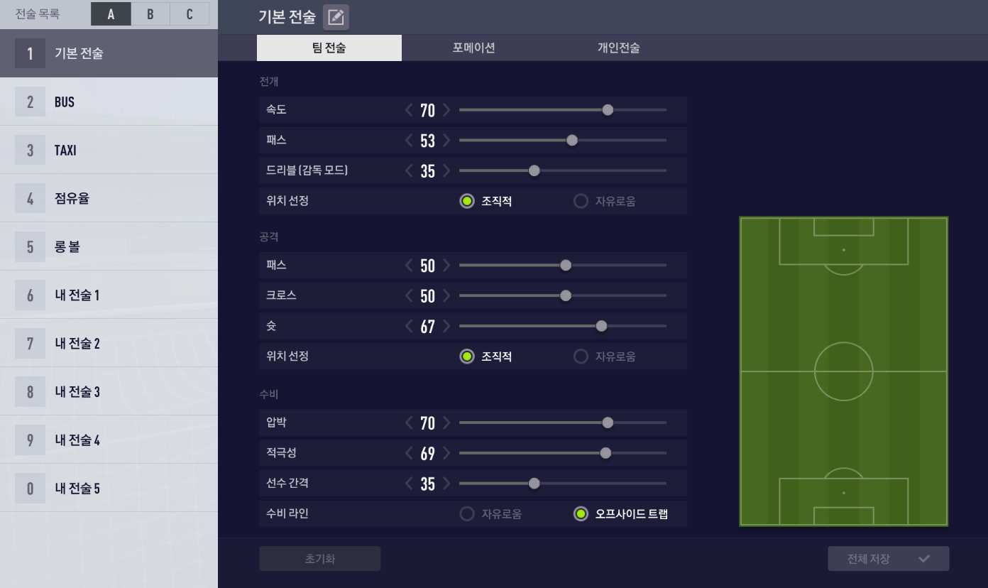 메타가 바뀌어서 그러려니 했는데 기본전술에서 팀전술을 바꾸니 확실히 수비라인 움직임이 다르다는 것을 느꼈습니다.