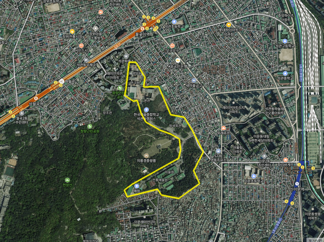 공원으로 조성된다면 상당히 큰 부지임에 틀림 없습니다. 1호선 외대역과 6호선 돌곶이역을 잇는 가장 가까운 길이기도 합니다.