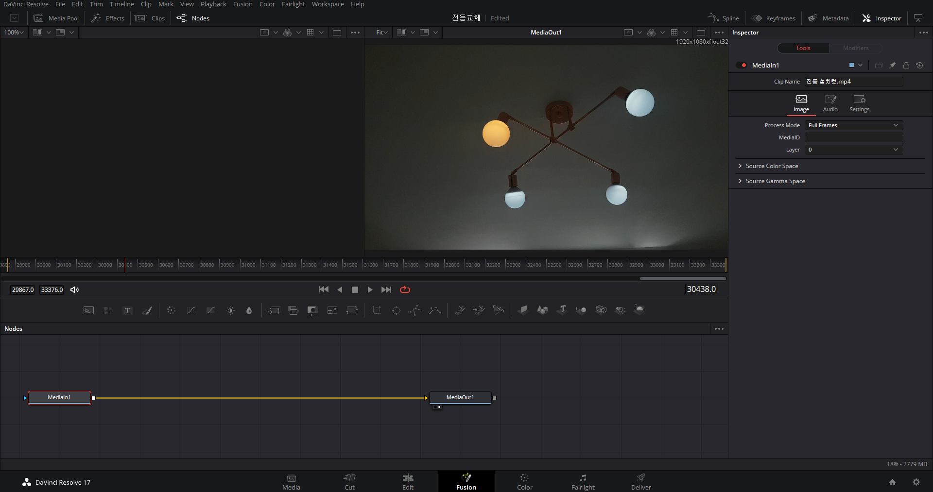 다빈치 리졸브는 같은 프로그램 상에서 퓨전 탭으로 이동하여 내장기능을 사용하면 됩니다.