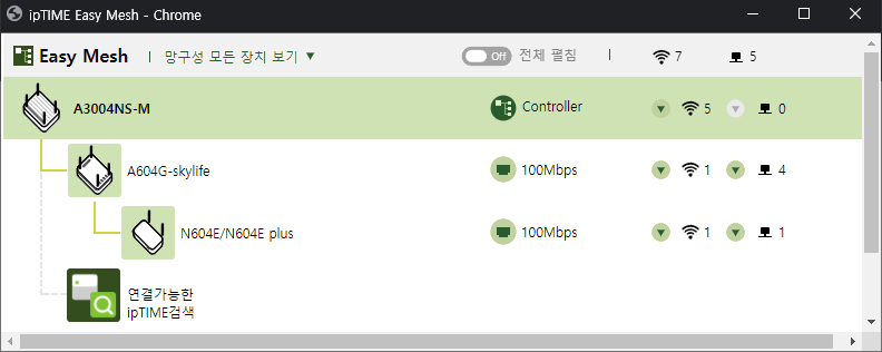 아이피타임 제품이 아니다 보니 이지 메시로 구축이 되지 않으니 이지 메시 관리 모드에서의 불편함도 있었는데 그럭저럭 사용할만해서 그냥 사용했습니다.