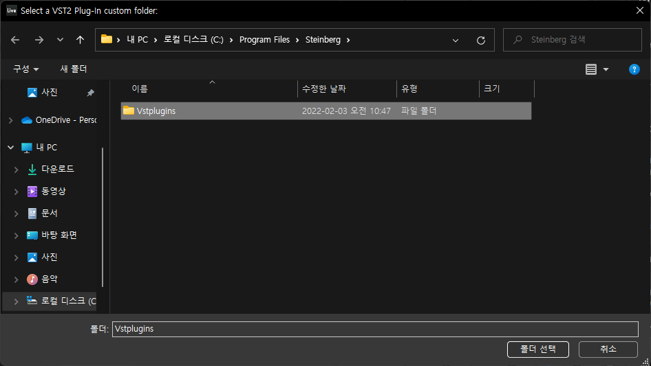 맨 위에서 폴더 설정을 하듯이 VST3 플러그인이 설치된 폴더를 따로 지정하는 메뉴도 있습니다.