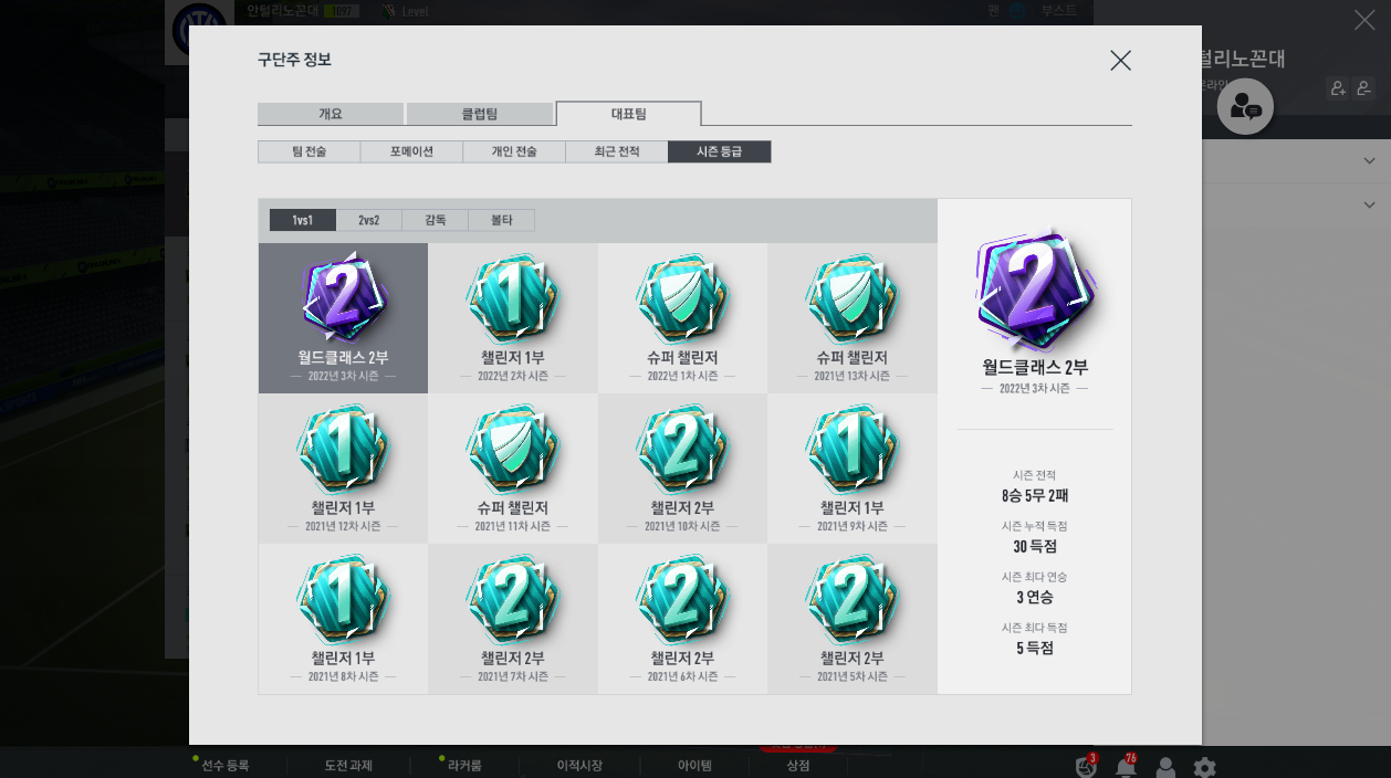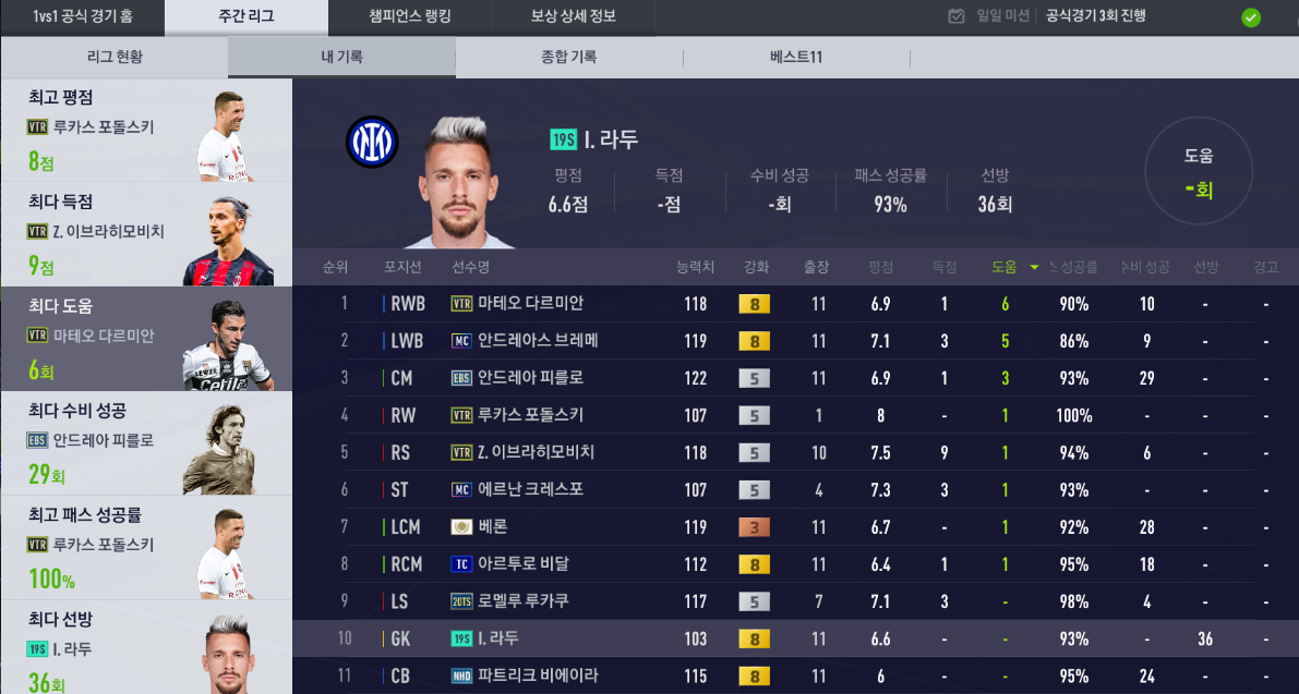 예전에 크로스 메타일 때는 챔피언스도 간신히 찍긴 했는데 지금의 메타는 헤딩이 상향되었다곤 하지만 여전히 침투형 공격수가 대세인 것 같습니다.