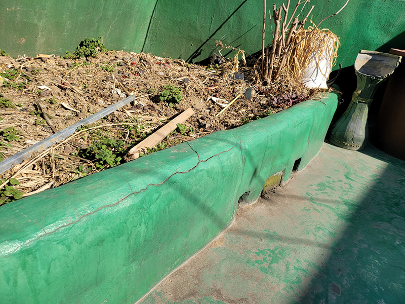 6. 바닥이 떨어져 나간부분 움푹 파인 부분은 규사(고운 강모래)나 레미탈에 방수제 1, 물 1, 희석하여 발라준다.