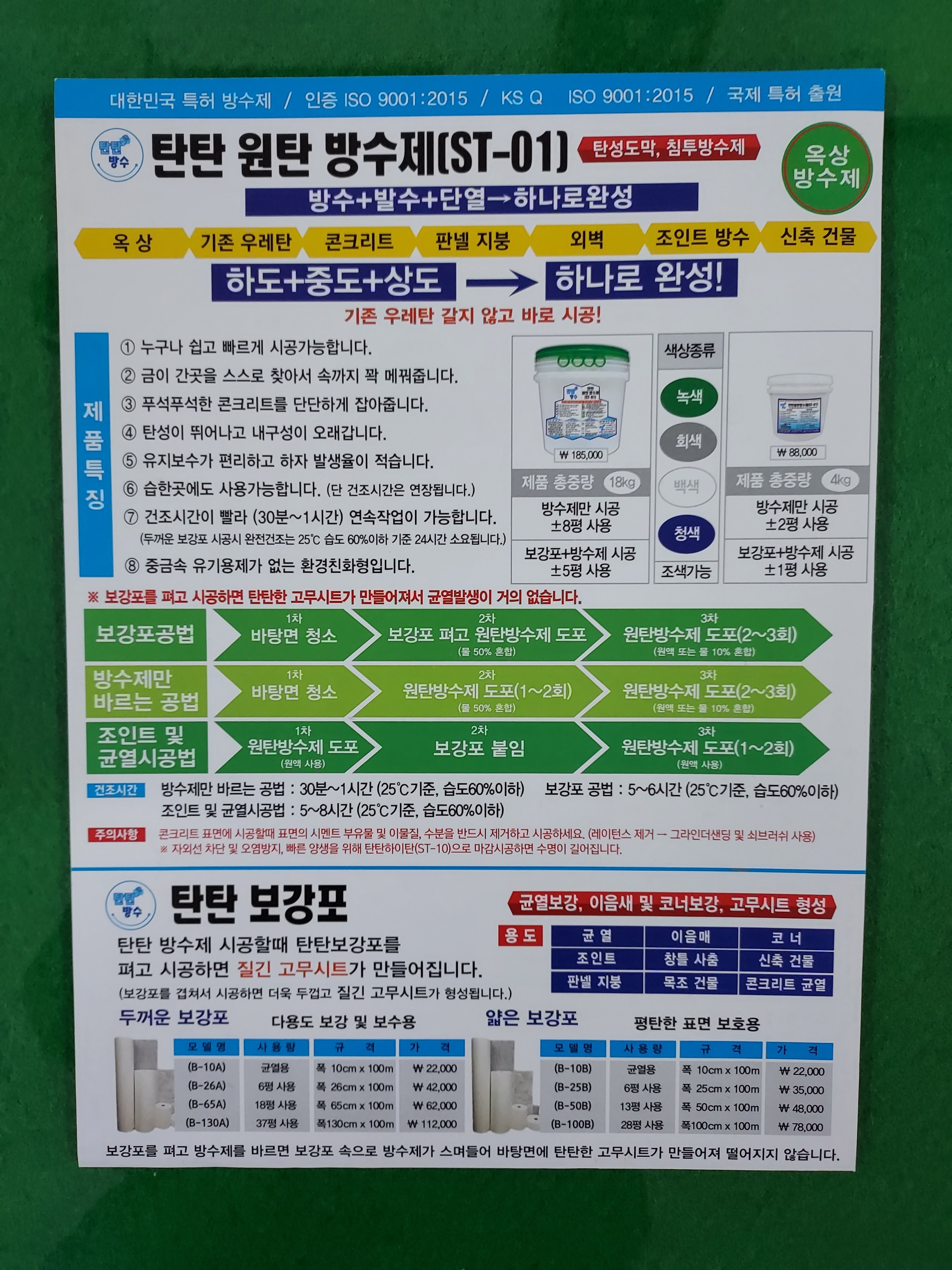 조금 더 극대화를 하려면 방수포(보강포)를 같이 시공해주면 좋습니다.