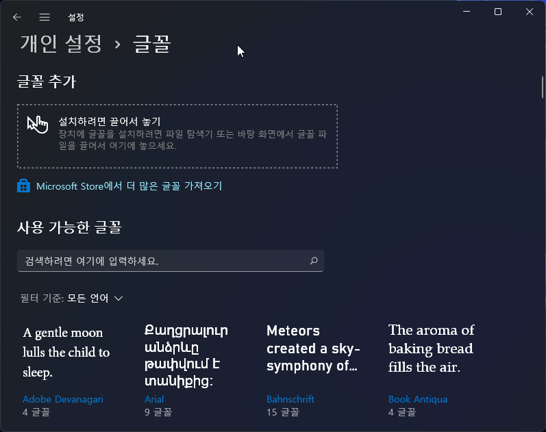 윈도우11에서 Adobe와 그 외 프로그램을 위한 폰트 설치하는 방법