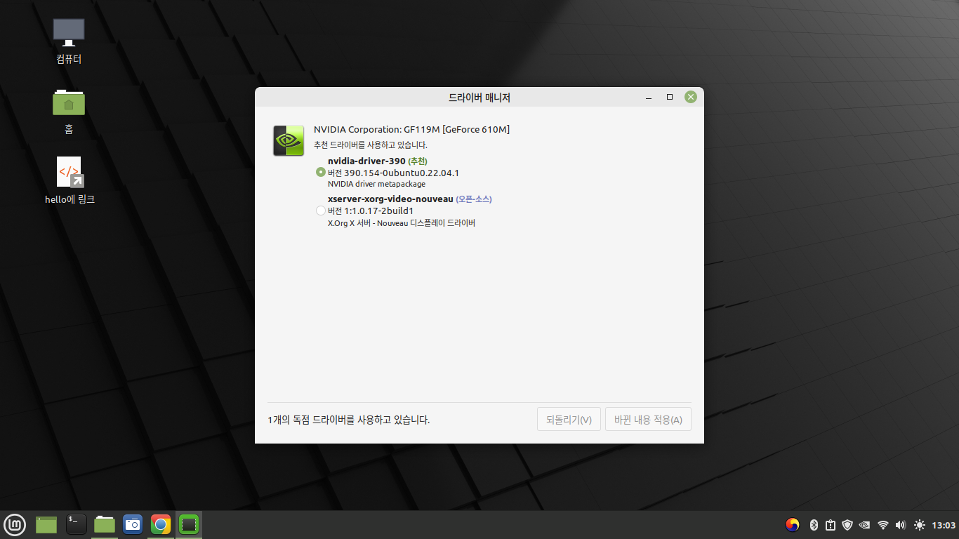 설치방법은 뒤에서 설명하도록 하고 일단 쓰임새가 있는지부터 보고 리눅스 민트를 사용할지 여부를 정해야 했기에 설치하자마자 이것저것 업데이트도 해보고 패치도 하고 드라이버도 설치해 보았습니다.