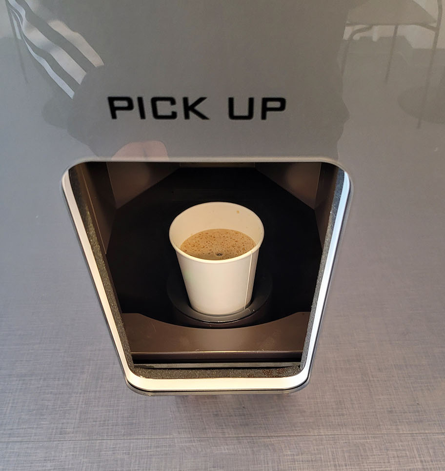 터치패널을 눌러 주문을 하면 이렇게 커피가 나옵니다.