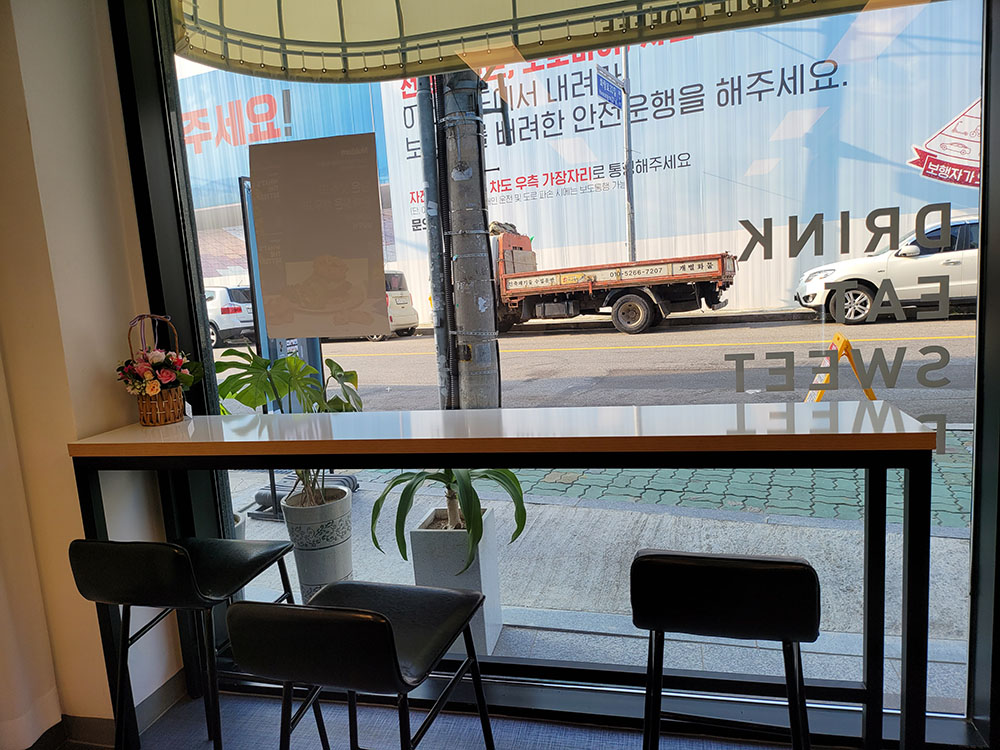 안타깝게도 지금은 공사현장이 보이지만 외부를 바라보며 마실수 있는 바 테이블도 있습니다.