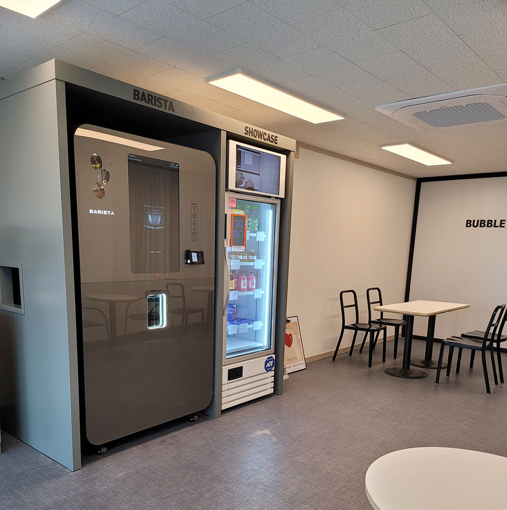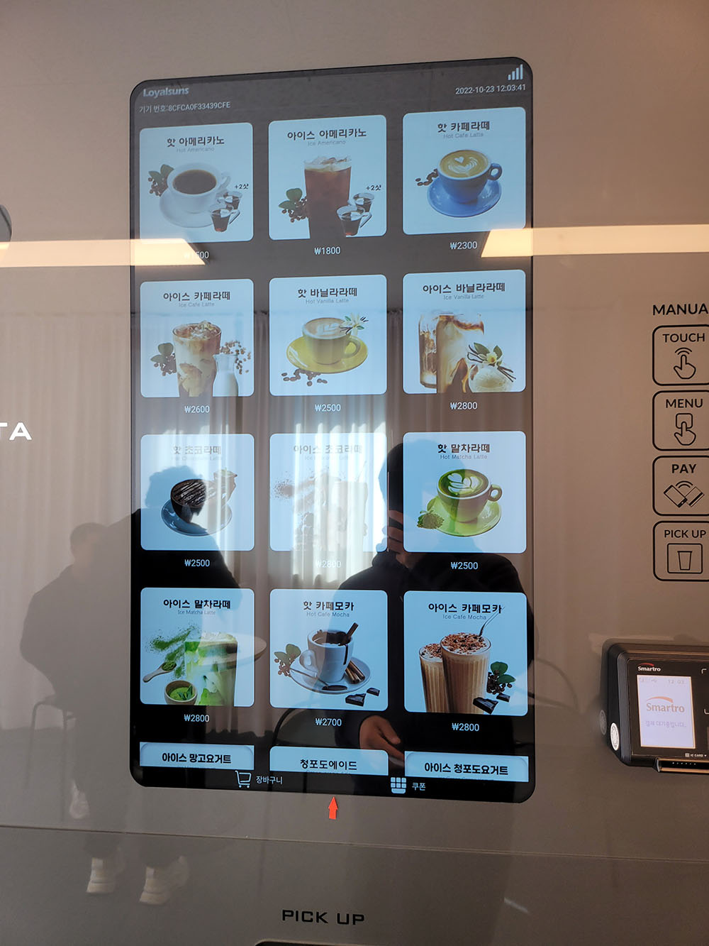 무인 주문시스템인 키오스크와 자판기를 합쳐놓은 형태의 자판기인데 상당히 크고 고급스러워 보여서 자판기 가격도 상당할 것 같다는 생각이 듭니다.