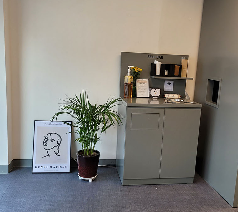 무인점포의 특성상 큰 공간이 아니기에 깔끔하게 인테리어를 한 것 같습니다.