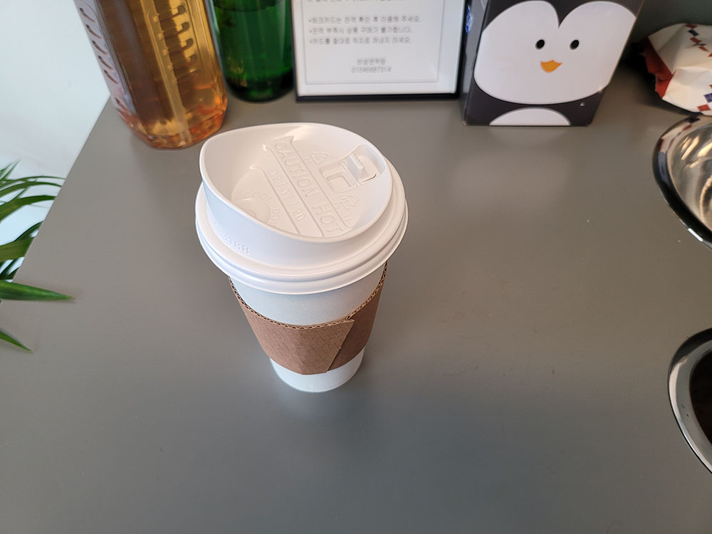 아이스 아메리카노를 위한 투명 뚜껑도 있고 빨대도 비치되어 있습니다.