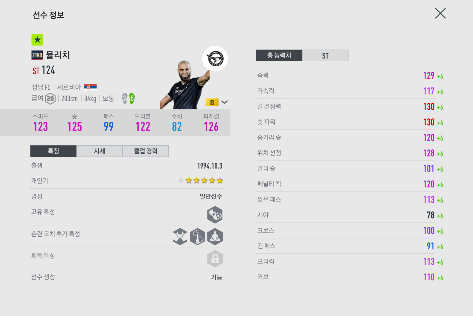 헤딩은 너프가 많이 된 터라 엄청 위협적이지는 않지만 세트피스(코너킥)에서 장신 뮬리치는 위협적입니다.