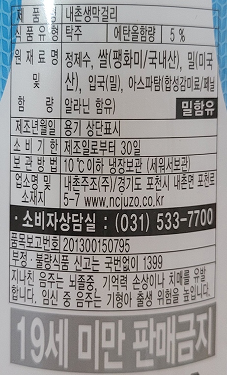 내촌생막걸리의 양